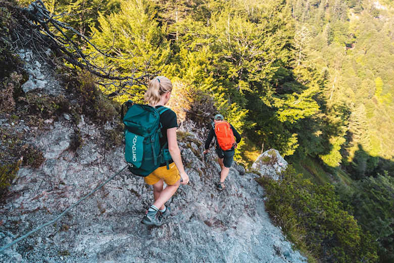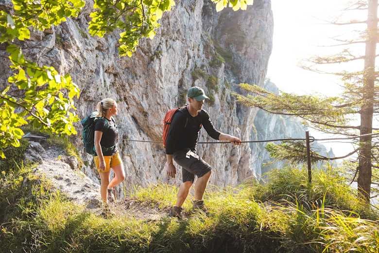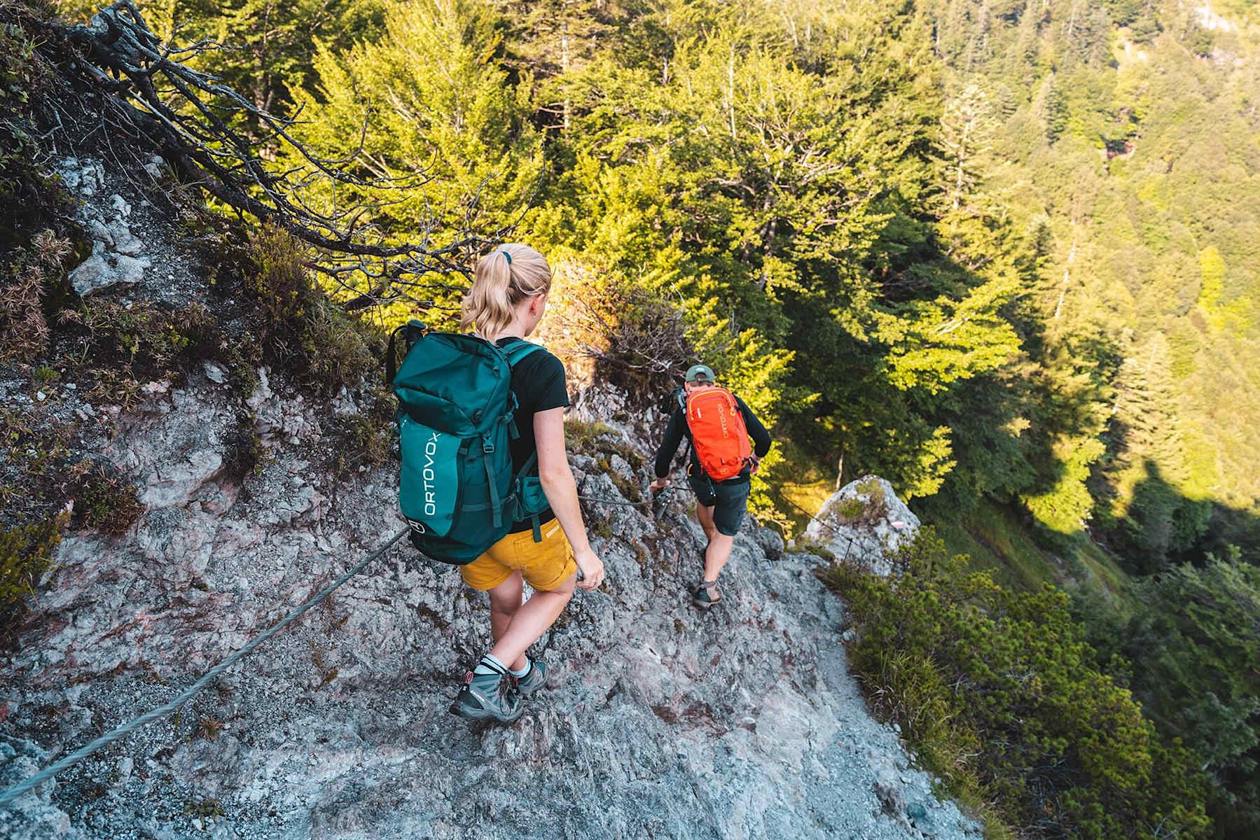 Schwindelfreie Bergwanderer können auch die Alternativroute über den Schleierwasserfall nehmen. Der Abstieg über eine ca. 5 m lange und steile Leiter wird mit dem einzigartigen Natur- und Kletterschauspiel am Schleierwasserfall belohnt.