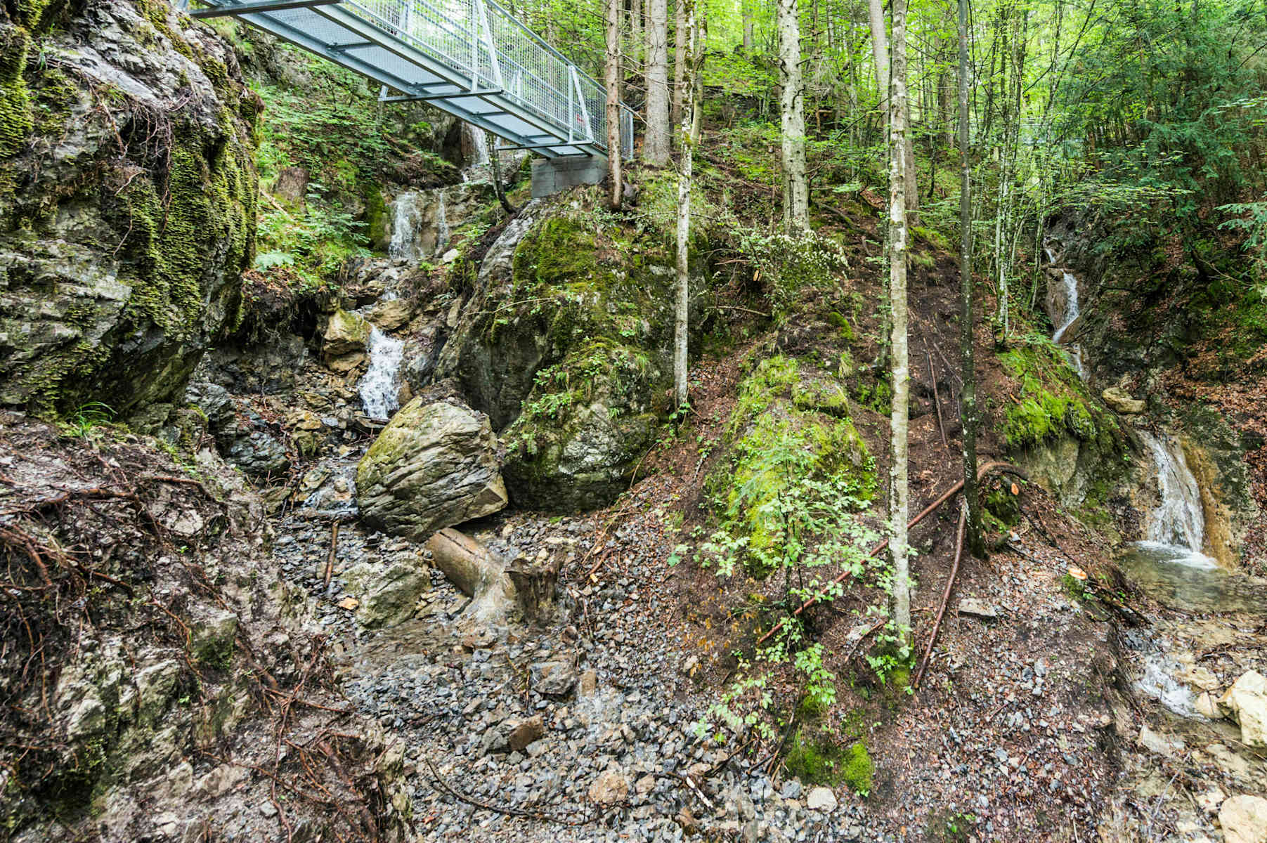 Besonders für Kinder ist die Schlucht ein kleines Abenteuer – mit Felsen zum Klettern, Holzstegen zum Balancieren und Natur zum Anfassen.