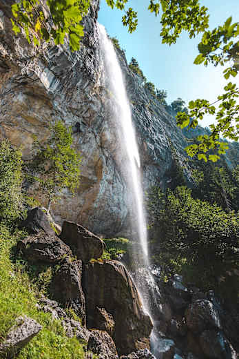 Der Schleierwasserfall ist ein einzigartiger Naturschauplatz. Hier fällt ein spritziger Gebirgsbach als Schleier eine 60 Meter hohe Felswand herab.
