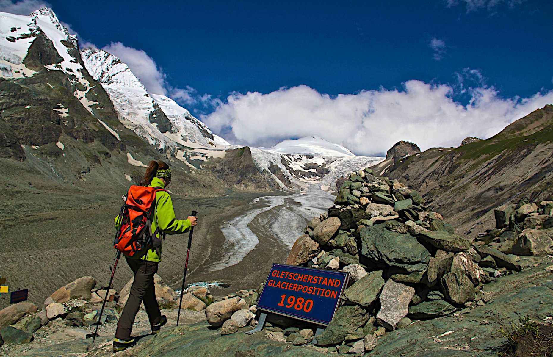 Man startet unmittelbar an der Kaiser-Franz-Josefs-Höhe. In steilen Serpentinen steigt man entlang des „Gletscherwegs Pasterze“, vorbei am Schrägaufzug der Gletscherbahn, hinab ins Vorfeld der Pasterze. Man steigt weiter ab zum Sandersee und überquert die Möllschlucht über eine Hängebrücke. Vorbei am „Steinzeichenplatz“ geht es über den „Elisabethfelsen“ zum Margeritzensee.