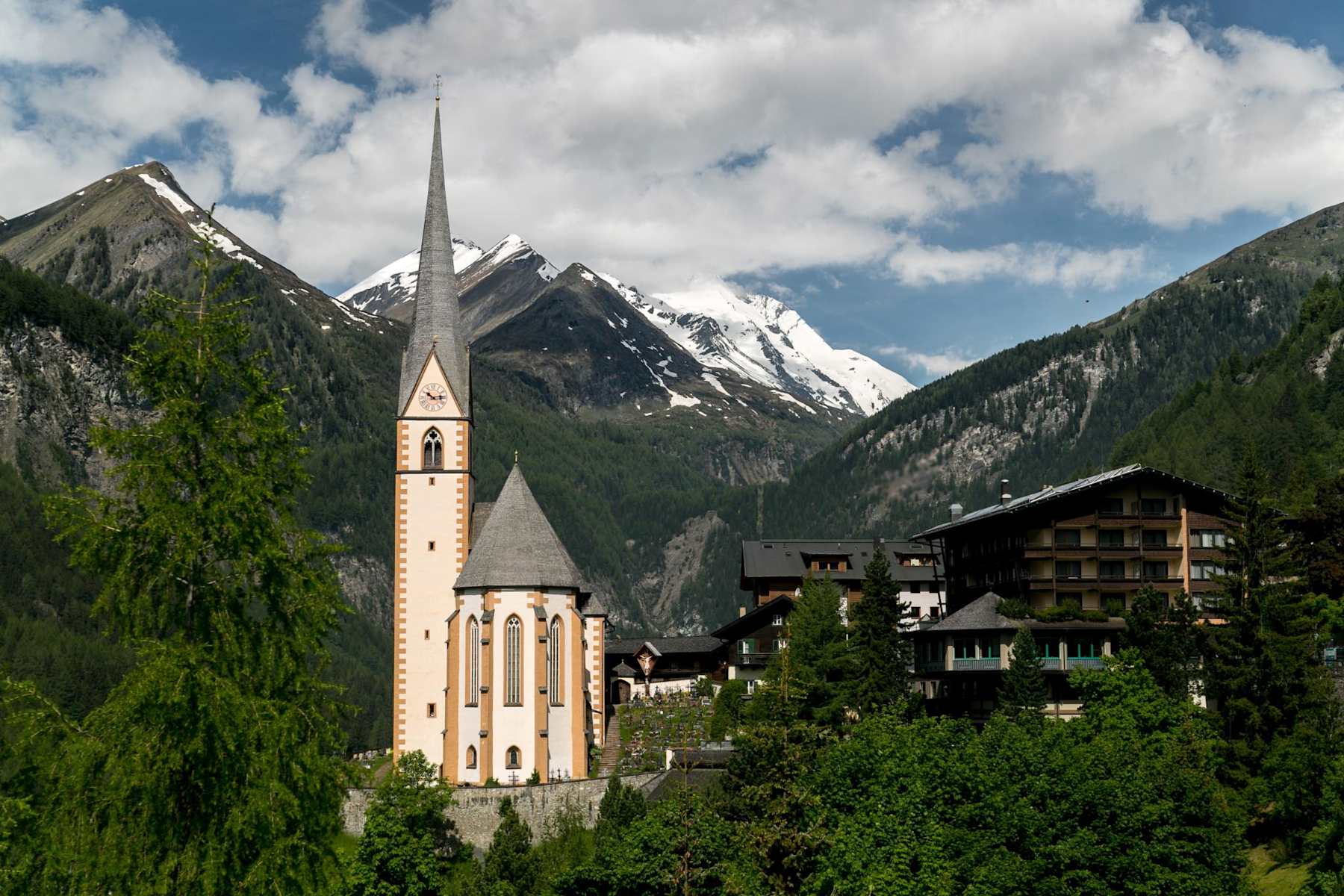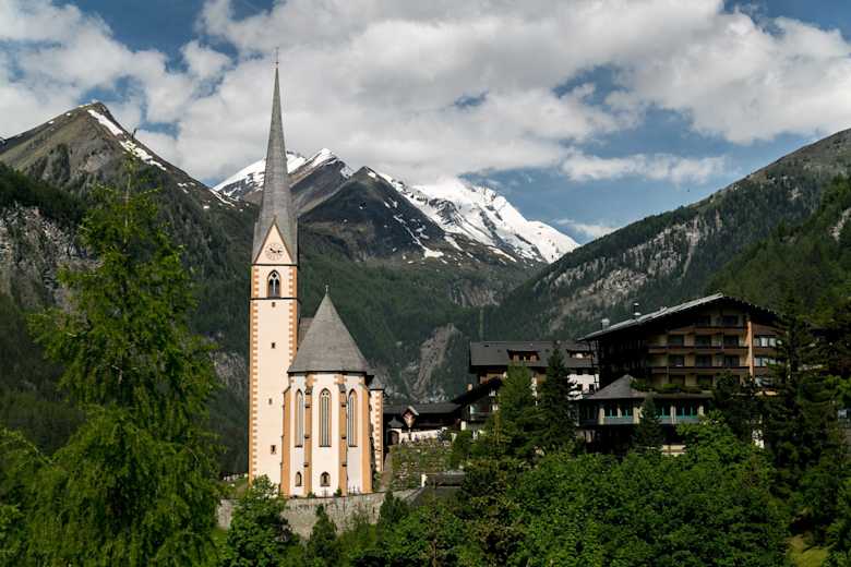 Wallfahrtskirche St. Vinzenz in Heiligenblut mit Großglockner Foto: Roland Oberdorfer, Kärnten Werbung GmbH - AlpeAdriaTrail