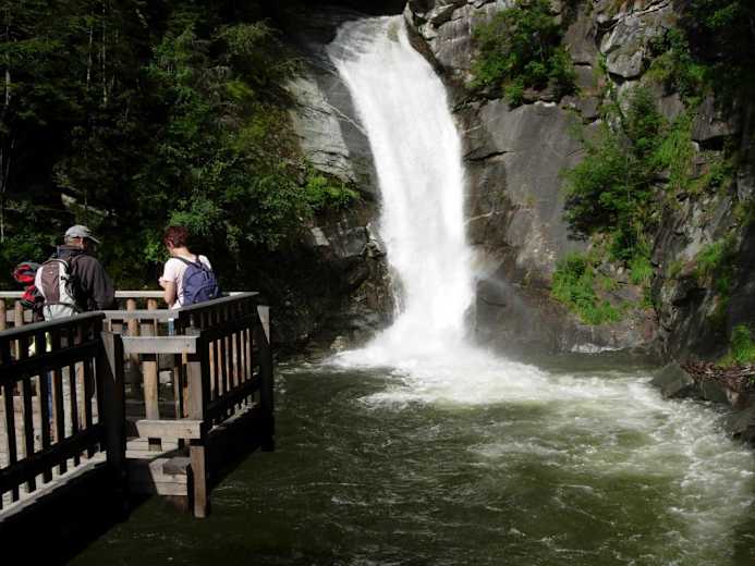 Der kurze Zuweg zum ersten Gößfall kann auch von geh- und sehbehinderten Mitmenschen bewältigt werden.