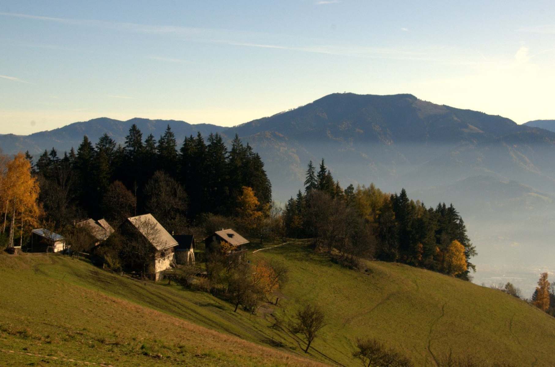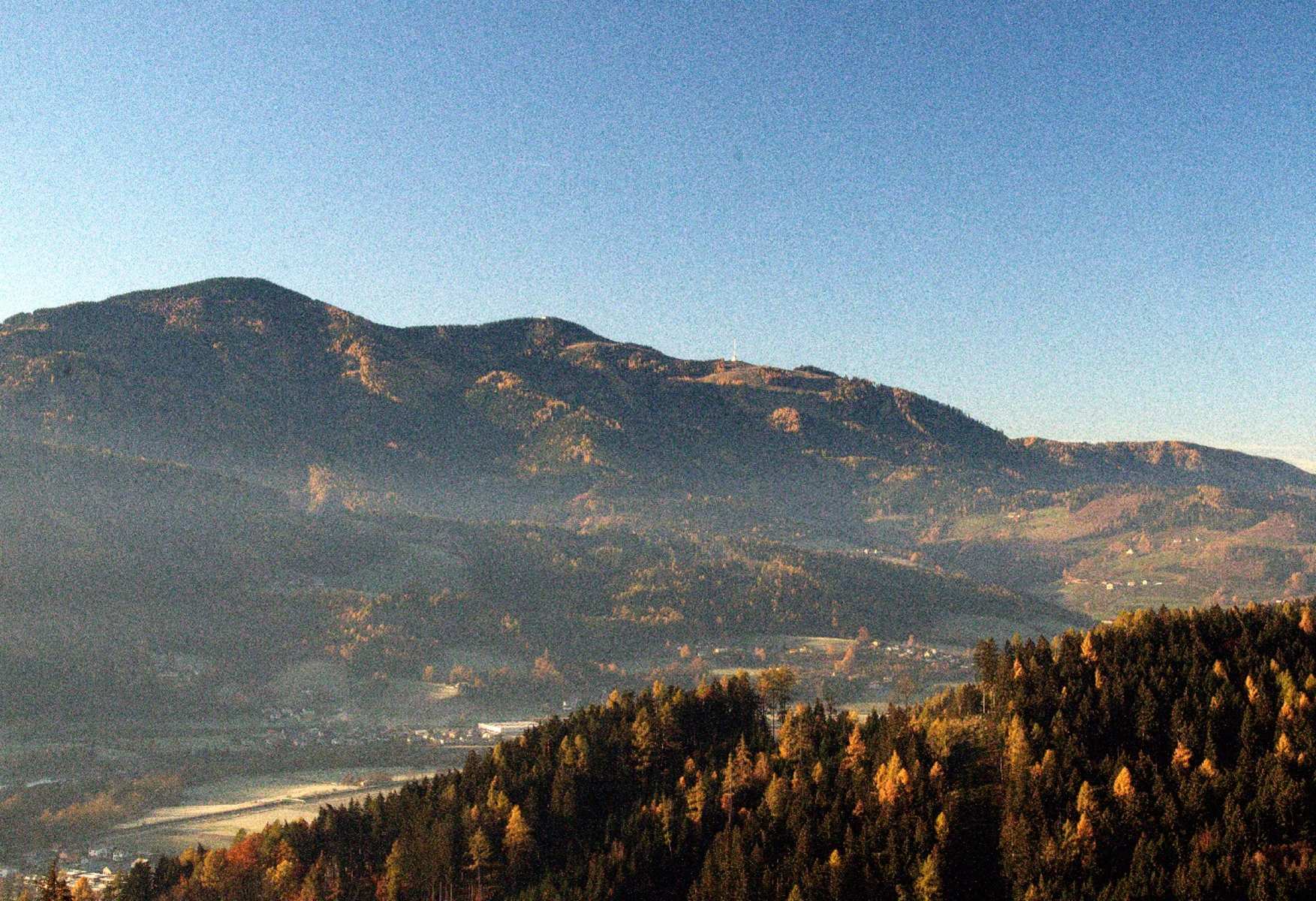 Den rechts aufwärts führenden Holzstiegen bis zur nächsten Wegkreuzung folgen (Blick in das Lamingtal, schöner Blick auf den Brucker Schlossberg) und nun scharf links auf Waldwegen und Steigen über den 772 m hohen Dürrnberg aufwärts zum Gehöft Breitenthaler (markantes Holzkreuz mit Christus) wandern. Ab hier kurz in nördlicher und dann immer in westlicher Richtung (teilweise etwas schlecht markiert) bis zur großen Wiese unterhalb des schon sichtbaren Almgasthauses Puster gehen.
