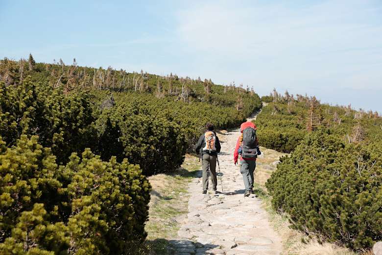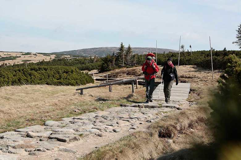 Von der Spindlerbaude auf dem polnisch-tschechischen Freundschaftsweg: Unterwegs kommt man am meistbesuchten tschechischen Berg vorbei, dem Snezka (Schneekoppe).