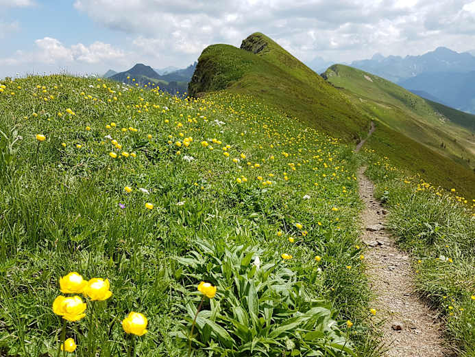 Es ist nicht überraschend, dass der Damülser Höhenweg im Bregenzerwald in Vorarlberg eine der beliebtesten Wanderungen in Damüls ist. Während der Blütezeit konkurriert die artenreiche Flora mit beeindruckenden Ausblicken.