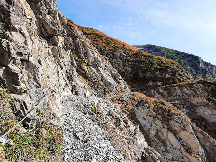 Kurze seilversicherte Stelle nach der Bärenalpe Foto: Melanie Fleisch, CC BY-ND, Alpenregion Bludenz Tourismus GmbH