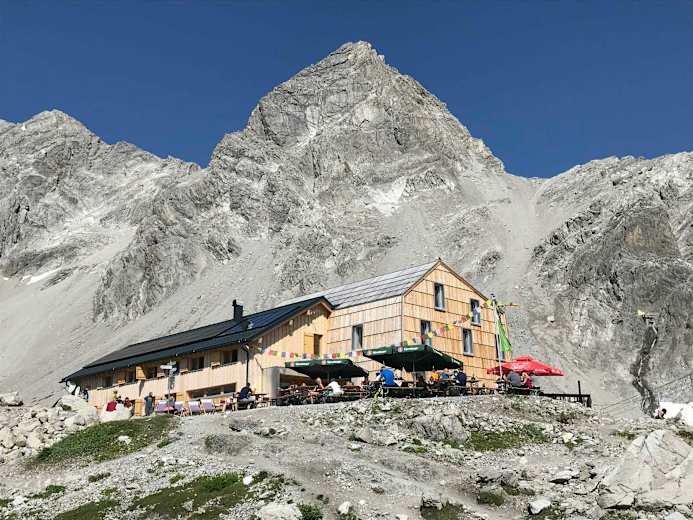 Die Totalphütte vor dem Zirmenkopf Foto: Christina Schwann, ökoalpin