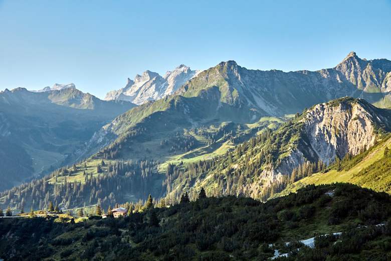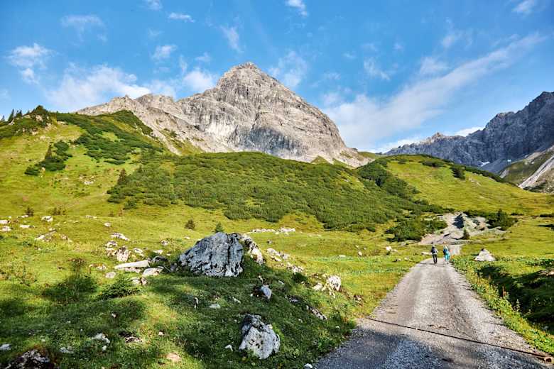 Nach Auffahrt mit der Lünersee Seilbahn bis zur Bergstation mit der Douglasshütte, wandert man am Rundweg, überquert die Staumauer und steigt dann übe die Lünerkrinne auf. Auf schöne Almböden geht es weiter bis man westlich das Gipsköple passiert. Nun nimmt man den unteren Weg mit Beschilderung zur Heinrich-Hueter-Hütte.