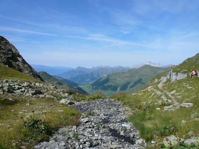 Beim Schafberg Hüsli Bergrestaurant beginnt man diese spannende grenzüberschreitende Wanderung. Man folgt zunächst dem Beschilderung zum St. Antönier Joch (2.379 m). Dort überschreitet man die Landesgrenze in die Schweiz und wandert weiter über den Grat zum höchsten Punkt der Tour auf 2.477 m. Hier ist Trittsicherheit notwendig, ebenso heutzutage wie damals zu Schmugglerzeiten!