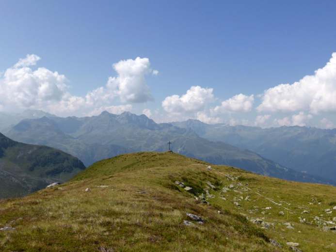 Oben angekommen geht man am Grat entlang zunächst weiter und steigt dann in Richtung Rossberg erst einmal etwas ab. Der Weg führt dann zur Abzweigung Rossberg und man geht in Richtung Netzamaisäß weiter. Dann beginnt der Abstieg. Laut dem dort anzutreffenden Wegweiser (Rossberg 2.190 m) erreicht man die Maisäß Obere Netza in ungefähr 45 Minuten. Nach Gortipohl wird eine Dauer von 1:15 h angegeben. Wenn man Maisäß Obere Netza auf 1.635 m erreicht hat hält man sich weiter in Richtung Gortipohl und erreicht dann Gortipohl in circa 1:15 h.