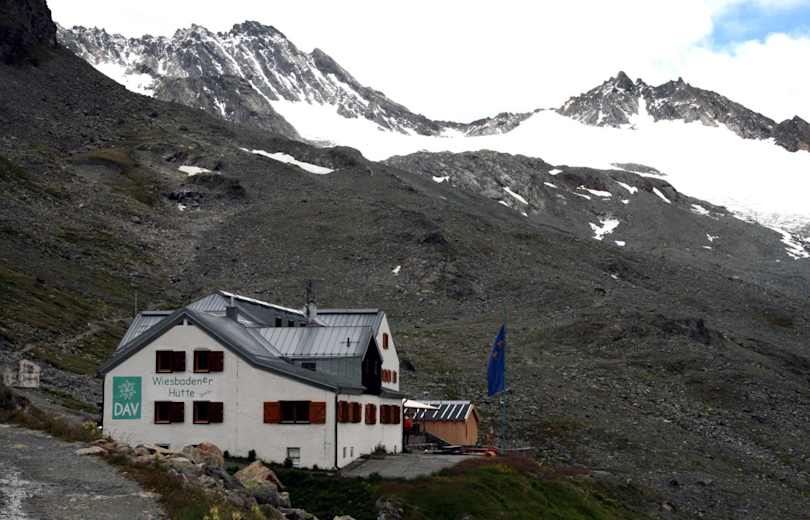 Die Wiesbadener Hütte liegt etwa auf der Hälfte der Strecke und eignet sich ideal zum Einkehren. Dort kann man gemütlich rasten und regionale, gutbürgerliche Speisen genießen.
