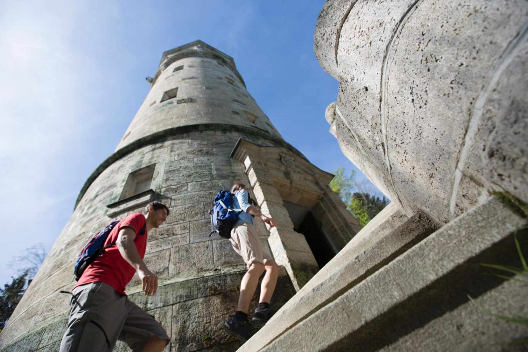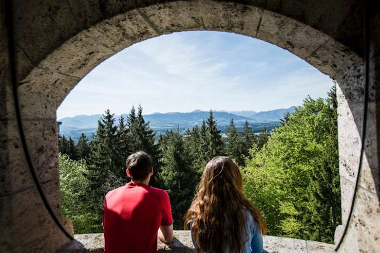 Am Gasthaus rechts abbiegen und auf dem Wanderweg zur Taubenberghöhe weitergehen. Bei der Kapelle führt ein Forstweg halbrechts zum Aussichtsturm auf dem höchsten Punkt des Taubenbergs. Den Schlüssel bekommt man gegen Pfand im Gasthaus Taubenberg. Zurück geht es über den Forstweg, dem Wegweiser Oberwarngau folgen.