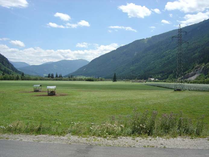 Beim Schloss Lodron rechts zur Evangelischen Kirche und rechts über die Moostratte zur Trefflinger Landesstraße. Vorbei an der Malerei Landsiedler geht man gerade weiter bis zur Ortstafel nach Landfraß, dann rechts über eine Brücke und gerade weiter durch den Ort bis zum letzten Haus der Siedlung. Durch den Ortsteil Moos wandert man weiter bis zum Haus Pirker, dann folgt ein kurzer Anstieg durch den Fichtenwald bis zum Wegkreuz, bevor man rechts Richtung Trebesing hinuntergeht. Über die Brücke des Lieserflusses gelangt man zu einem Kreisverkehr und zum Trebesinger Wirt. Durch den Ort spaziert man entlang der Römerstraße bis Radl. Nach dem ehemaligen „Gasthaus Rader" geht es links die Straße auf den Großhattenberg/Aich und entlang der Asphaltstraße bis zur Kreuzung zum Simonbauer. Rechts talabwärts erreicht man die Ortschaft Holztratte, dann quert man die Landesstraße L12 und gelangt, vorbei am Hotel Platzer, zurück zum Hauptplatz.