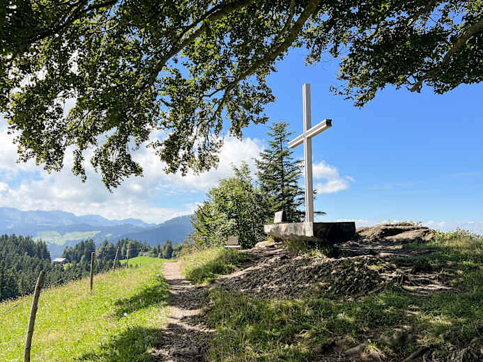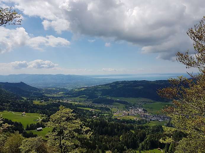 Ein aussichtsreicher Weg führt in die Parzelle Tannen. Danach beginnt ein Feldweg, der hinauf nach Kaltenbrunnen führt, wo man einen wunderbaren Ausblick auf Egg genießt. Man läuft durch die Ferienhaussiedlung und gelangt dann durch eine Waldstrecke in das Alpgebiet um den Brüggelekopf. Vom Gipfel bietet sich ein herrlicher Blick hinaus auf den Bodensee.