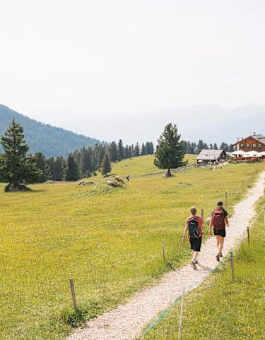 Vom Parkplatz Kaseregg (1.959 m) bei Klausen wandert man leicht ansteigend zur Untergruber Hütte (Einkehrmöglichkeit).