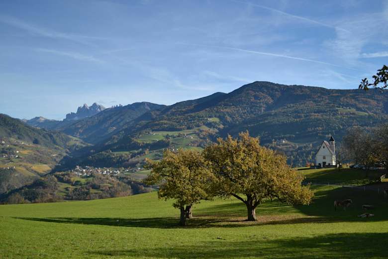 Die Wanderung führt durch Kastanienhaine und durch schattigen Mischwald, Obst- und Weingärten. Besonders im Frühling während der Apfelblüte und im Herbst zur Kastanienzeit ist dieses Wanderziel im unteren Eisacktal besonderns lohnend. Eine wahre Genusstour in den Sarntaler Alpen in Südtirol.