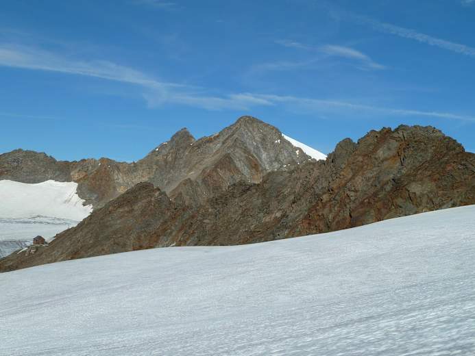 Anspruchsvolle und spektakuläre Bergtour in den Stubaier Alpen in der Südtiroler Region Eisacktal an der Grenze zu Nordtirol: Vom Talschluss Ridnaun in Maiern steigt man über Grohmann und Teplitzer Hütte am neuen „Carl-Sonklar-Weg“ zum Becherhaus (3.195 m) hinauf und danach auf den Wilden Freigers (3.418 m). Im Gegensatz zu den Nordanstiegen auf den Wilden Freigers benötigt man auf der Südroute keine Eisausrüstung.