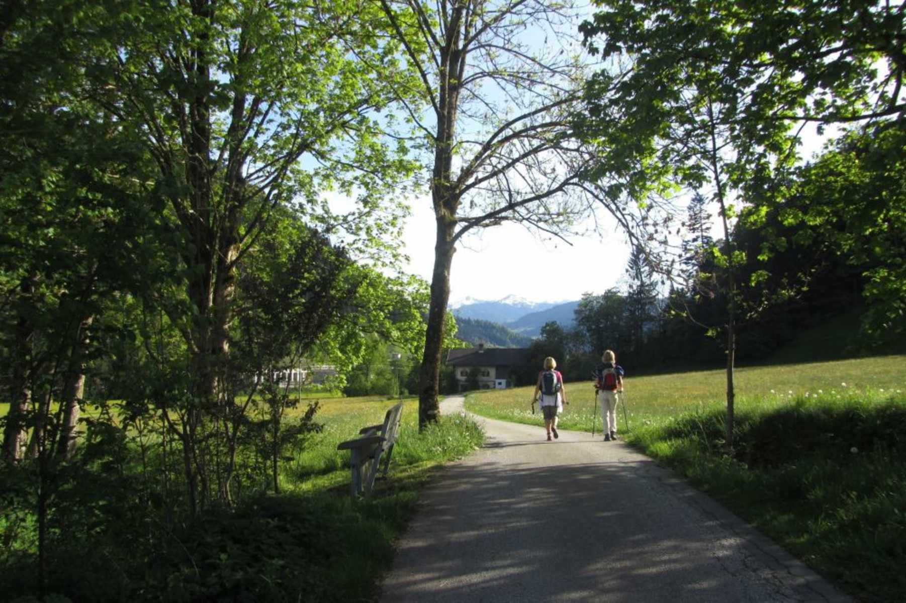 Von dort geht es entlang der dem Wanderweg von Going, vorbei an der Talstation der Astbergbahn, bis nach Ellmau, wo man im Ortszentrum die Austraße ortsauswärts wählt. Diese führt einen auf den Wanderweg nach Söll, wo sich die Jausenstation Lederer befindet.