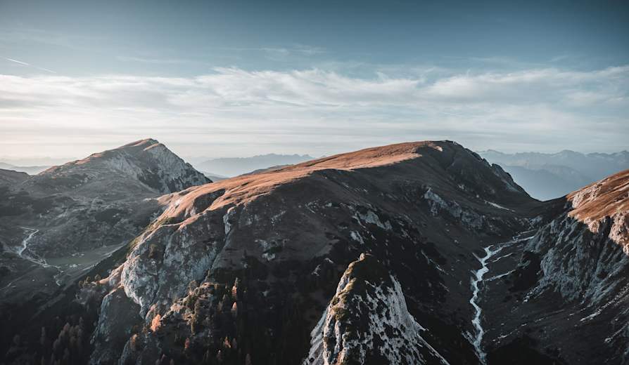 Kurz darauf links ab auf Markierung 6 in Richtung Osten zur Flatschkofelscharte (2.223 m) und zum Gipfel. Von hier steil bergab auf die Lanzwiesealm. Auf Markierung 6B geht es zurück zum Bad Bergfall.