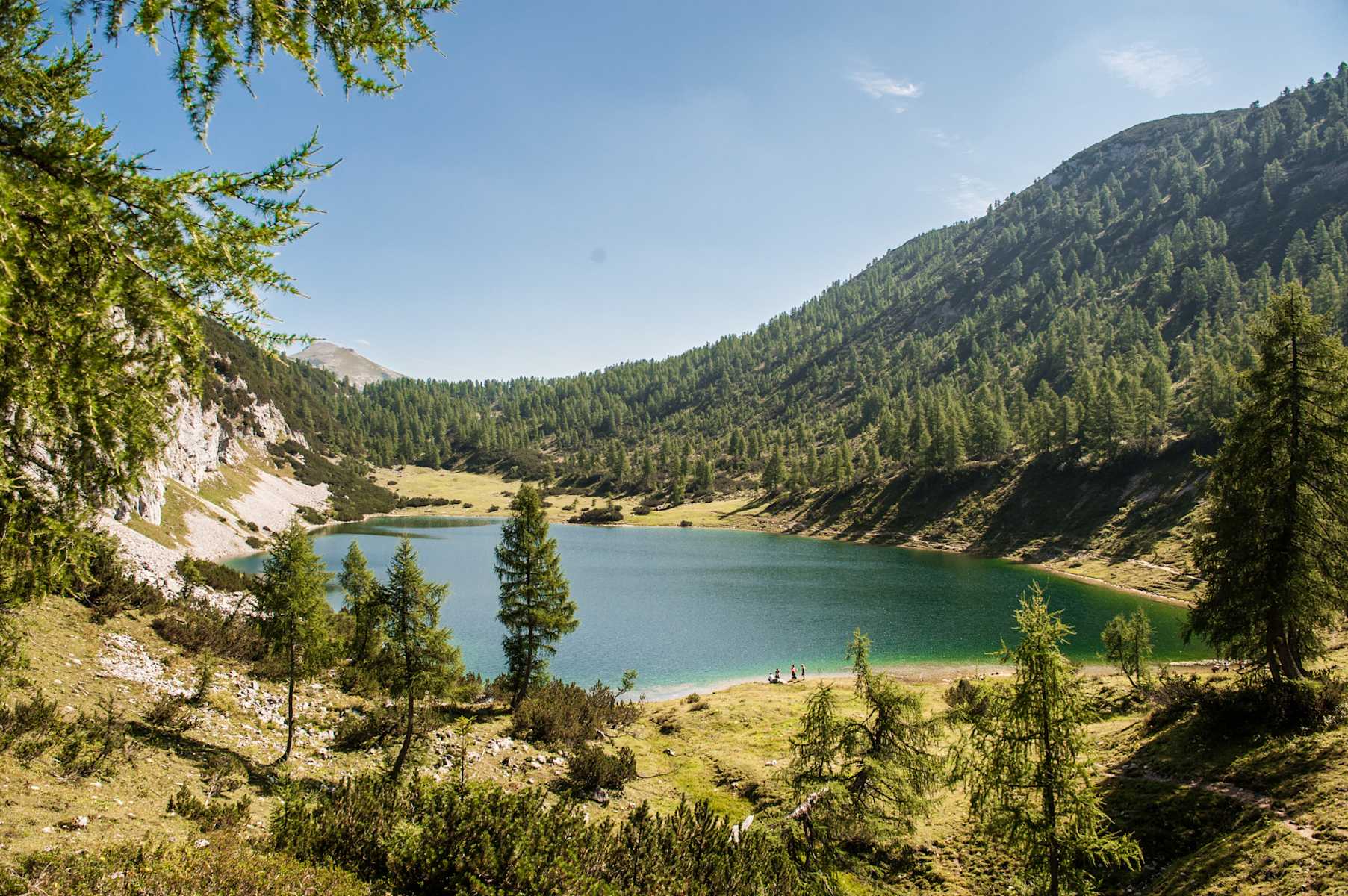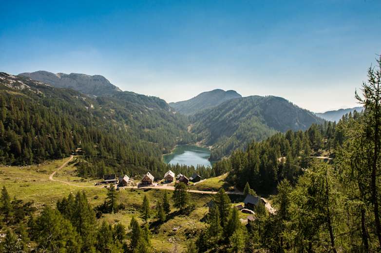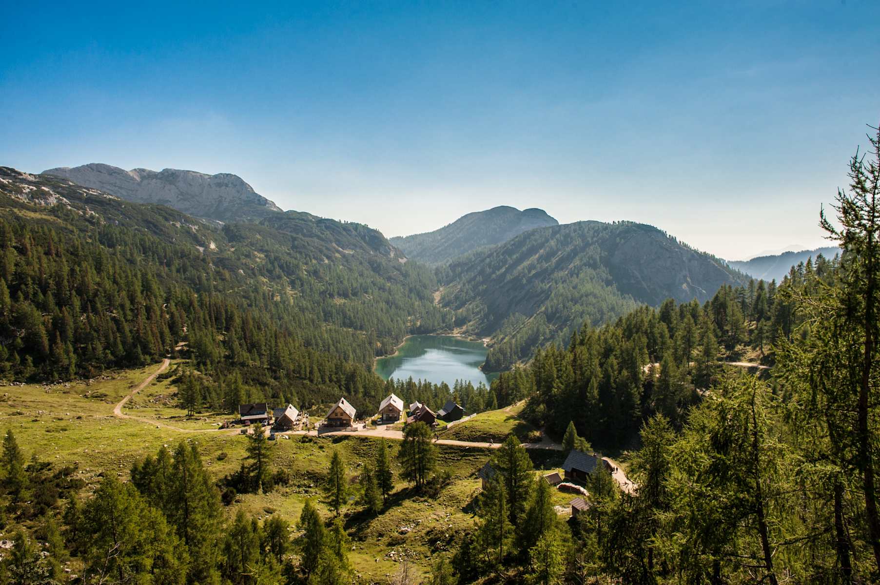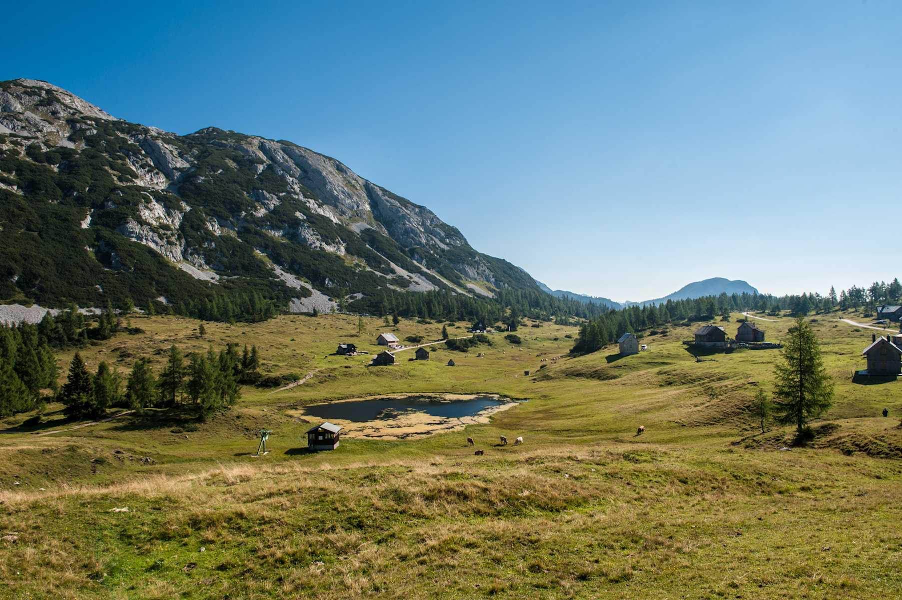 Ausgedehnte Wanderung durch das Tote Gebirge in der Steiermark: Ausgehend von der Tauplitzalm Bergstation führt diese wunderbare Tour über Almen und traumhafte Wanderwege bis zur Hochmölbinghütte und bergab ins Tal nach Wörschach im Ennstal. Vorbei am Steirersee, welcher bereits früh morgens aufgrund seiner warmen Temperaturen zum Schwimmen einlädt, und Schwarzsee geht es zur ersten Einkehr auf der Leistalm. Über die verfallenen Reste der Interhütten führt der Weg hinab zum Grimmingbach. Auf dieser Strecke, etwas abseits vom klassischen Salzsteigjoch, ist man oft einsam unterwegs um Kraft und Energie zu tanken.