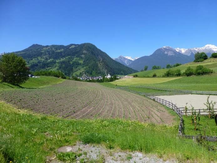 Auf dem Weg zwischen Roppen und Zams über Karres und Imster Au schafft man sogar fast 500 Hm Bergwertung und lernt die Ausläufer von drei Gebirgsgruppen kennen: Am Anfang Wetterstein- und Mieminger Gebirge, später Lechtaler Alpen auf der einen Talseite und Ötztaler Alpen auf der anderen.