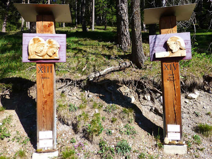 Von der Kapelle wandert man durch Bergwald und kleinere Moore zur Arlbergstraße und auf einem Pfad nach rechts zum Maiensee, an welchem man entlang geht, bis man den Fahrweg bergab nach St. Christoph erreicht. Auf der Straße gelangt man nun über den Pass und auf dem historischen Arlbergweg bis zur Alpe Rauz.