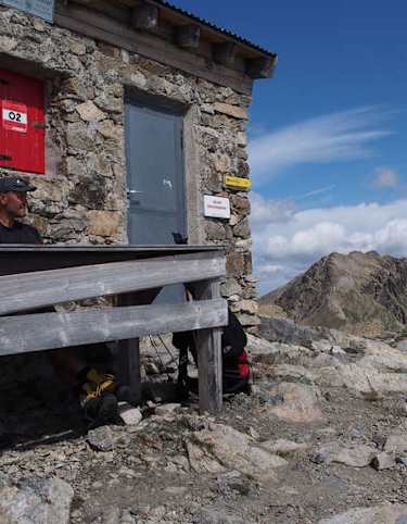 Von der Vorderen Dremelscharte sieht man bereits hinunter auf den Steinsee und man folgt dem steinigen Pfad abwärts, westlich am Steinsee vorbei bis zur Steinseehütte auf 2.069 m.