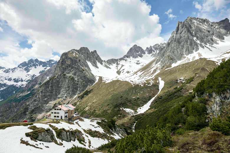 Die kleine Ortschaft Boden in der Gemeinde Pfafflar liegt an der Hahntennjochstraße, die das Außerfern mit dem Inntal verbindet. Hier beginnt der Weg durch das schöne Angerletal zur Hanauer Hütte auf 1.922 m, der auch gleichzeitig Teil des E4 alpin ist. Die Hanauer Hütte erreicht man nach rund 2 h Gehzeit erreicht. Nun geht es auf dem E4 alpin steil aufwärts zur Vordren Dremelscharte mit 2.434 m, die den höchsten Punkt der Tour darstellt. Für diesen Bereich ist Trittsicherheit erforderlich.