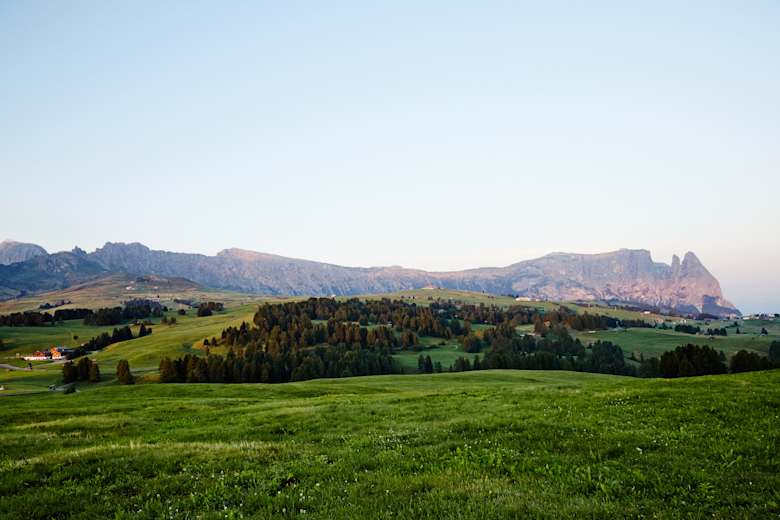 Wichtig: Das Landschaftsschutzgebiet Seiser Alm ist tagsüber (zwischen 9:00 und 17:00 Uhr) für den Privatverkehr gesperrt. Es empfiehlt sich daher, das Auto an der Talstation der Seiser Alm Bahn zu parken (Parkhaus vorhanden) und mit der Bahn zur Alm hochzufahren – so beginnt die Tour entspannt und aussichtsreich.