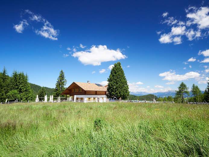 Beginn der Wanderung ist am Parkplatz Bar Arche in Deutschnofen. Auf dem Weg Nr. 1 gelangt man in gut einer Stunde zur Laab Alm. Nach einem ersten Einkehrschwung geht es weiter zur Petersberger Leger Alm.