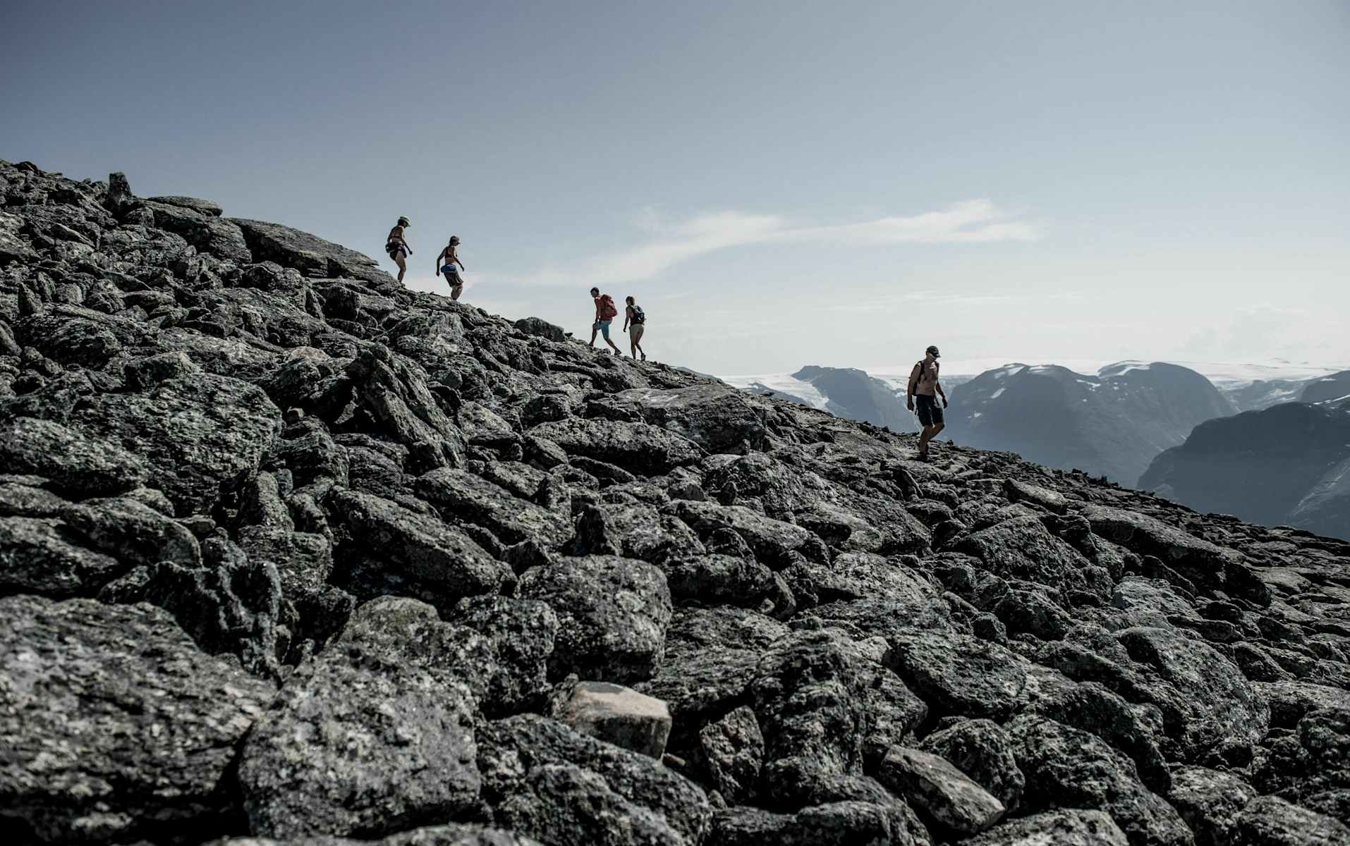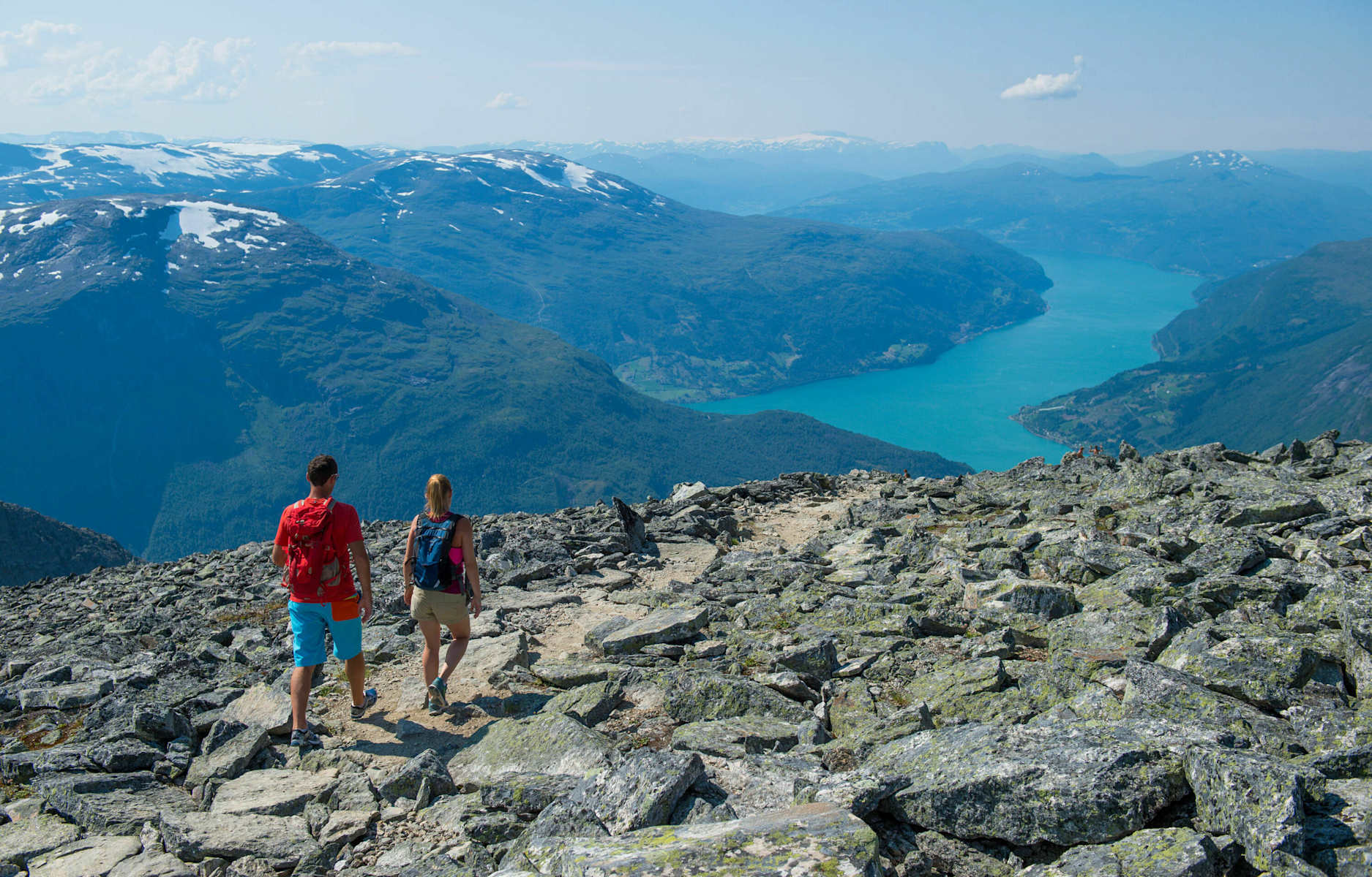 Um den Gipfel des Berges Skåla (1.848 m) zu erreichen, muss der längste Anstieg Norwegens bezwungen werden: Der Skåla, ein Gigant von einem Berg, thront mächtig über dem Ort Loen. Diese spektakuläre Wanderung mit toller Aussicht auf den Fjord, die Berge und den Gletscher wird als die „Topp-Tour“ Norwegens bezeichnet, da sie den größten Höhenunterschied zwischen dem Einstieg am Fjord und dem Gipfel aufweist.