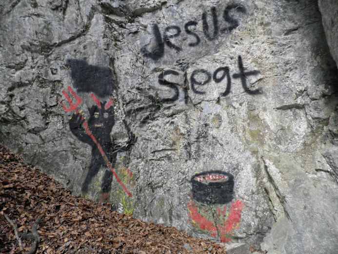 Der Pilgerweg „Himmel und Hölle“ schlängelt sich entlang einer uralten Route, die bereits von vielen Menschen begangen wurde. Sie windet sich mit Steinstufen steil über einem schützenden Hohlweg nach oben.