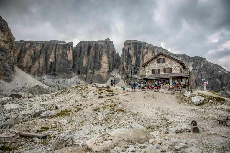 Man startet in Corvara und steigt zuerst einmal bis zur Piz Boé Alpine Lounge Hütte (2224 m) auf – der Weg verläuft dabei längs der Skipiste oder kann auch mit der Boé Gondelbahn zurückgelegt werden. An der Bergstation der Gondelbahn Boé beginnt nun die eigentliche Wanderung entlang des östlichen Hangs am Fuße der Sella-Gruppe.