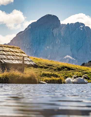 Zahlreiche Dolomiten-Hütten mit tollem Ausblick bieten dabei gemütliche Einkehr in wunderbarer Südtiroler Berglandschaft.