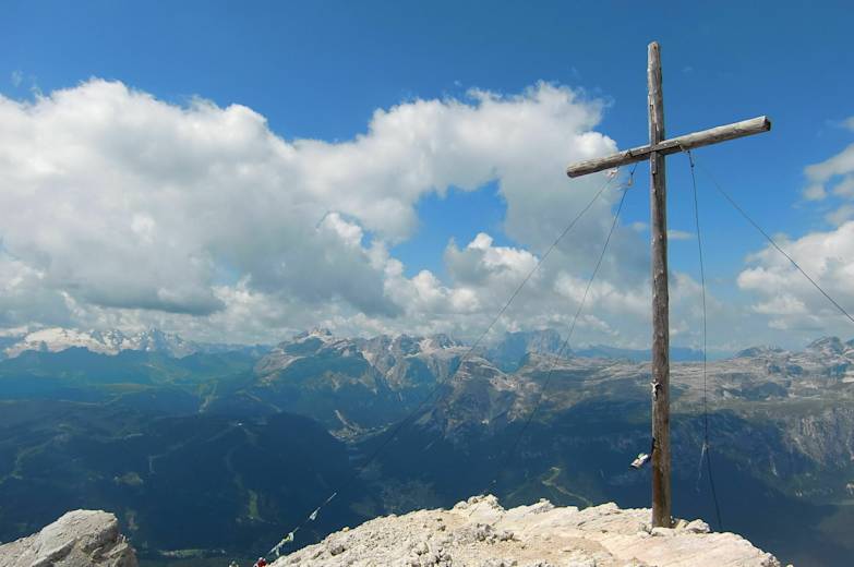Von Badia geht es dabei auf den Le Ciaval-Gipfel des Sas dla Crusc/Kreuzkofel, von wo man eine umwerfende Rundumsicht genießt. Danach kann man entweder den bereits gewohnten Weg absteigen oder aber mit dem Abstieg Richtung La Villa noch etwas mehr Abwechslung hineinbringen.
