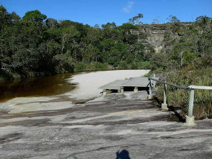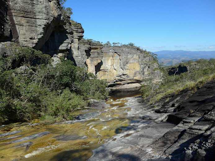 Nach etwa 5 km und 300 Hm ist der Anstieg beendet und es folgt eine kleines Stück (ca. 2 km) abwärts. Man erreicht den idyllischen Wasserfall „Cachoeirinha“, wo man eine kurze Badepause und eventuell eine Jause auf dem Quarzsandstrand einlegen sollte. Man kehrt zurück auf den Hauptwanderweg und folgt den Schildern bis man nach nur einigen hundert Metern den Wasserfall „Janela do Céu“. Wie Name schon verrät, er bedeutet nämlich „Fenster zum Himmel“, bietet der Wasserfall einen unvergesslichen Anblick.