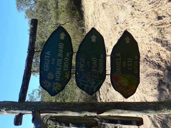 Wählt man den „Circuito Janela do Céu“ zuerst, spaziert man vom Parkplatz aus vorbei am Restaurant und dem Campingplatz und steigt einige Meter bergab in Richtung „Prainha“. Nach nur einigen Metern gelangt man an den kleinen Strand. Hier gabelt sich der Weg und man entscheidet sich zuerst in Richtung „Janela do Céu“ zu wandern. Man folgt dem gut markierten Weg nach links und beginnt den Aufstieg. Man passiert eine sehenswerte Höhle („Gruta Monjolinho“) und etwas später folgt eine Weggabelung zum „Pico do Pião“ bei der man jedoch geradeaus weiter in Richtung „Janela do Céu“ wandert.