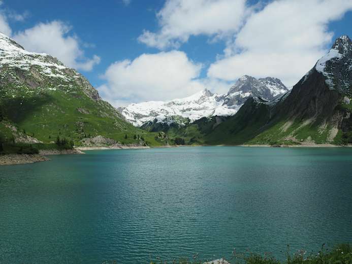 Vom Spullersee über das Stierlochjoch nach Lech: Auf dieser aussichtsreichen Familienwanderung umrundet man den Spullersee und wandert über die Ravensburger Hütte und das Stierlochjoch zurück nach Lech. Lohnende Tour in Vorarlberg.