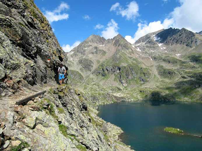 Weiter geht es entlang des Wangenitzsees zur Oberen Seescharte, die einen unglaublichen Blick auf das gesamte Debanttal sowie den umliegenden Bergen ermöglicht. Von dort aus kann man schon das Ziel, die Roaneralm erspähen. Über den wirklich genial angelegten Wiener Höhenweg geht es hurtig zur Roaneralm. Es folgt der Abstieg bis zum Iselsberg.
