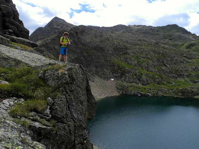 Vorbein an unzähligen italienischen Festungen aus der Zeit der 30er-Jahre und dem Marchinkele erreicht man nach gut 5 h Gehzeit das Toblacher Pfannhorn. Weiter über Pfanntörl, Kalksteinjöchl und Rotlahner zum viel umschwärmten Schwarzsee.