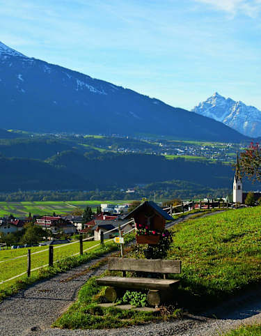 Auf der rechten Flussseite des Inns reihen sich die kleineren Dörfer Hatting und Polling in Tirol. Für einen kurzen Spaziergang mit der ganzen Familie ist eine Rundwanderung von Dorf zu Dorf in der Region der Stubaier Alpen gerade richtig. Auf Feldwegen und Seitenstraßen kann man dem Autoverkehr entgehen. Fürs leibliche Wohl am Ende sorgt der Gasthof Neurauter in Hatting.