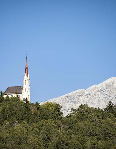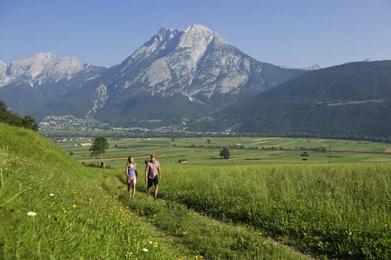 Auf den Flächen des Inntals lässt sich gut spazieren gehen. Eine Rundwanderung führt von Oberhofen in Tirol nach Fraurling und wieder zurück, die Hohe Munde der Mieminger Kette oder den Flaurlinger Rosskogel der Stubaier Alpen immer im Hintergrund. In Fraurling selbst sorgt das Gasthaus Goldener Adler für bodenständige Tiroler Schmankerl.