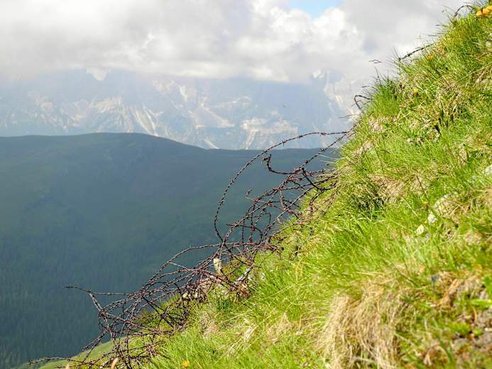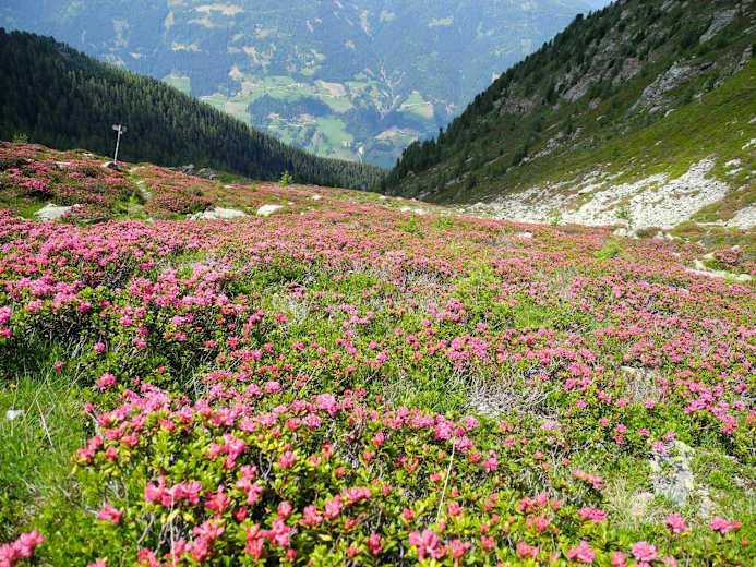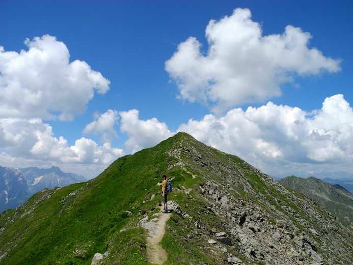 Der Weg führt fast immer am Grat entlang, sodass man immer einen Blick auf die südlichen und nördlichen Gebirgsgruppen werfen kann. Glockner, Hochgall, Venediger, Zinnen, Schusterspitze um nur einige aufzuzählen, das Panorama ist einfach nur genial. Des öfteren erhascht man auch einen Blick in eines der darunterliegenden Bergsteigerdörfer.