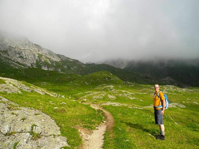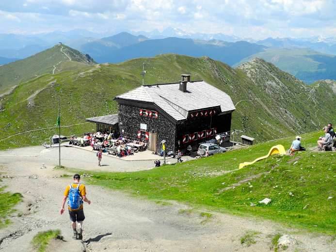 Bei der Sillianerhütte angekommen, geht es über den steil abfallenden Heimsteig in Richtung Arnbach.