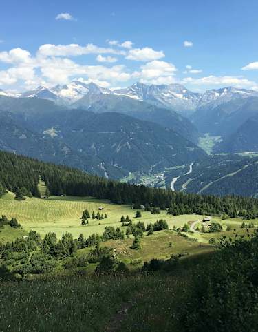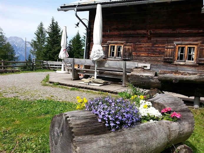 Mittelschwere Wanderung in den Tuxer Alpen in der Region Innsbruck in Tirol: Auf dieser Tour geht es vom Schutzwald in den Nutzwald. Auf dem erlebnisreichen Bergweg geht es vom Zirbenweg unterhalb der roten Wand hinauf zur Rinner Alm.