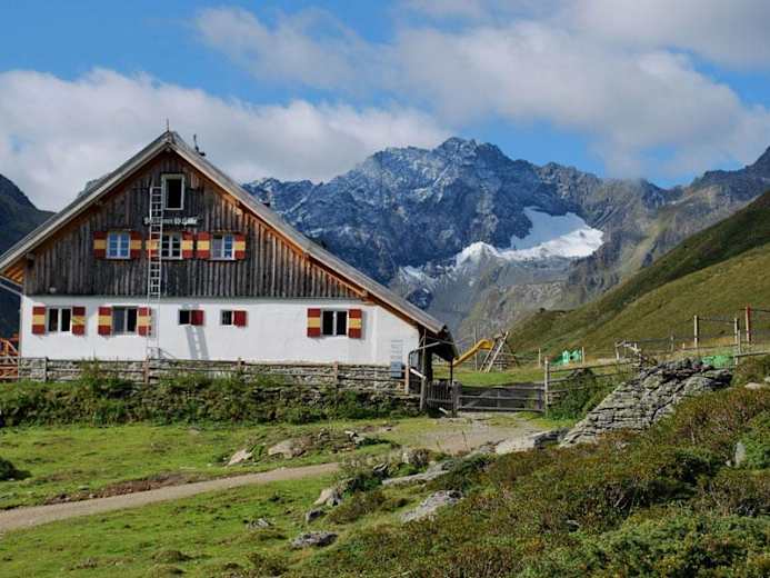 Mittelschwere Wanderung in den Stubaier Alpen in der Region Innsbruck in Tirol: Auf dieser Tour geht es von der Potsdamerhütte ausgehend zum Alpengasthof Bergheim. Die Strecke weist keine großen Schwierigkeiten auf - nur der Abschied von der bildhübschen Hütte am Anfang fällt schwer.