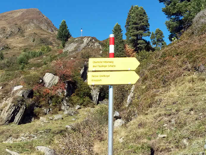 Der Anstieg erfolgt zunächst auf dem AV 152, bis nach ca. 90 min die Abzweigung zum Kreuzjoch kommt. Hier hält man sich rechts und folgt dem AV 153 über die Zirmbacher Narrenböden bis zum Grat (mit Wegweiser), der nach ca. 150 min erreicht ist. Nun geht es rechts über den Grat mit seinen Klippen in 30 min bis zum Gipfel.