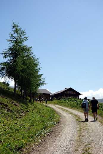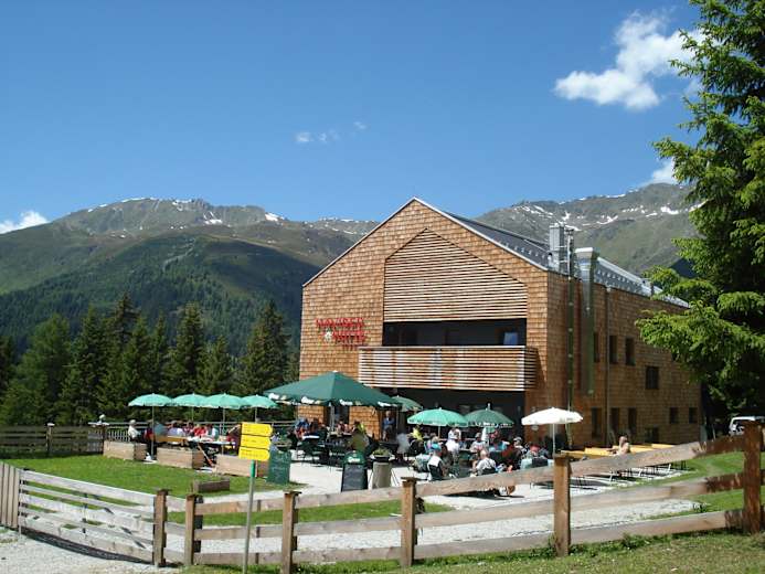 Bei der Klammalm ist dann „Halbzeit“. Hier hat man den Talschluss erreicht und wandert über die gegenüberliegende Talseite entweder auf einem Steig (Nr. 18) oder über den neuen Radweg zur Poltenalm. Über die schönen Schranzberg Mähder geht es zur Stöcklalm und schließlich über einen Wirtschaftsweg hinunter zu Naviser Hütte. Das letzte Stück wandert man abwechselnd über den Forstweg und den Waldsteig Nr. 32 bis man in die Aue gelangt und von dort zurück zum Parkplatz am Talboden gelangt.
