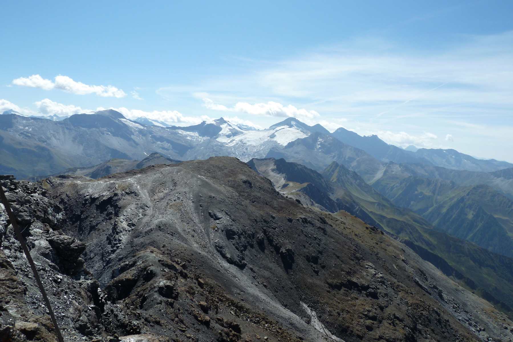 Durch dunkle Felsen und Geröll geht es weiter (Steig Nr. 325) bis zu einer Einsattelung zwischen Lizumer Reckner und Geier. Nun nach links über einige kleine Kletterpassagen (Seilsicherung) und noch ein paar Meter weiter bis zum Kreuz am Gipfel auf 2.886 m.