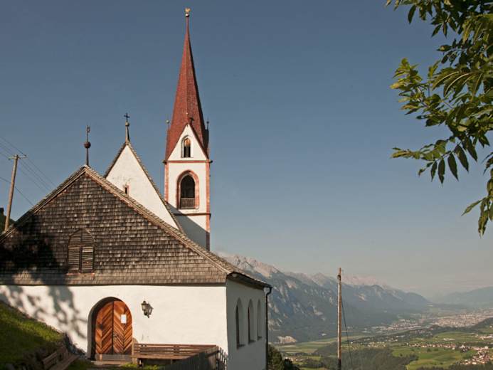 Mittelschwere Wanderung in den Stubaier Alpen in der Region Innsbruck in Tirol: Auf dieser Tour geht es von St. Quirin hinauf zum Sellraintaler Höhenweg. Oder eben hinab vom Höhenweg in den Ort.